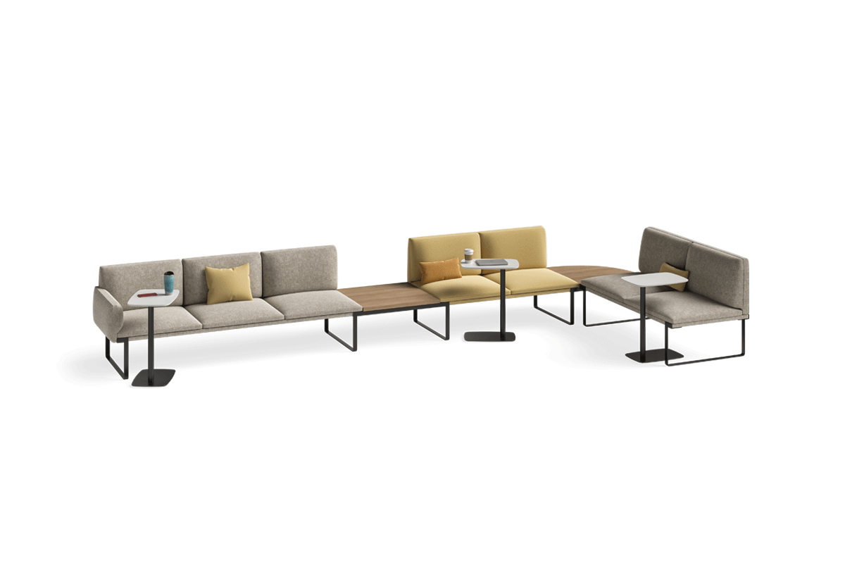 Get timeless style and limitless customization with our modular Cameo collection from Claudio Bellini, including multiple seating, benching and table options – which pair nicely with our Uni occasional table.