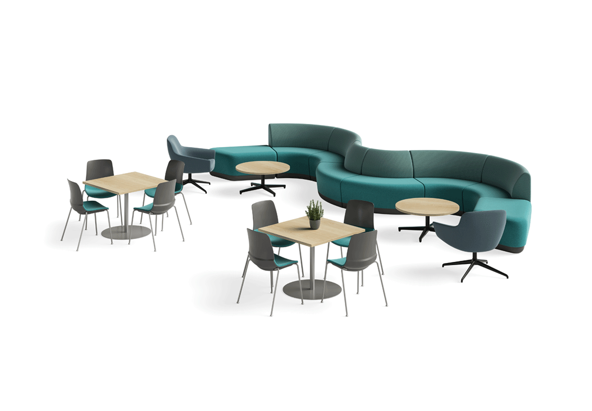 Provide next-level, well-curated design for any R&R space with a few award-winners and best-sellers, including Gobi and Paséa lounge seating, Mika multipurpose stackers, and Parallon café and occasional tables.