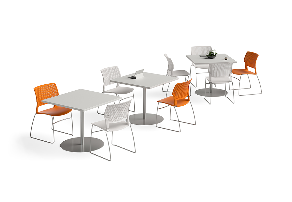 Our Parallon café tables and Orbix multipurpose chairs create comfort and convenience anywhere you need it.