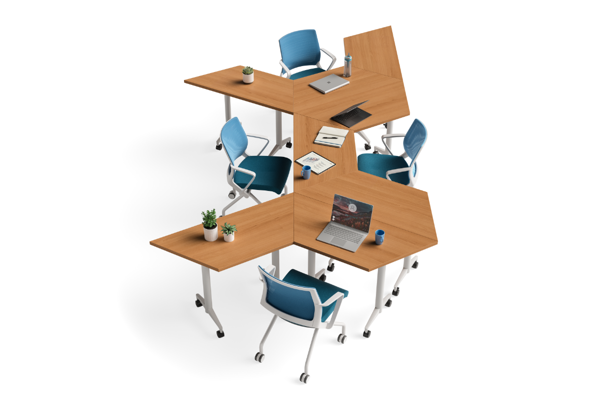 With a variety of Parallon tabletop shapes, you can bring inspiration to working spaces in a whole new way. Add our Movi nesting chair for extra style and comfort.