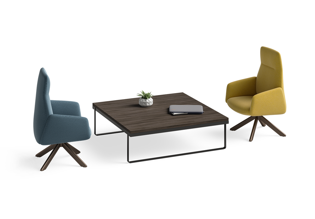 The organic comfort of Envoi club chairs meets the slim, sophisticated design of Cameo tables when you combine collections for the welcoming, waiting and unwinding spaces.