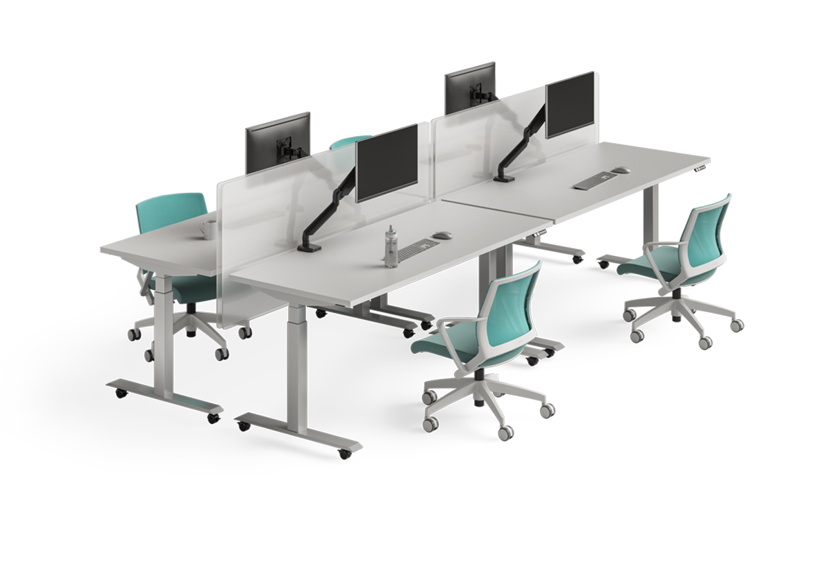 Tap into the core of productivity and create workstations designed for well-being when you add screens for protection and privacy to the Switchback table and Movi collection of task chairs.