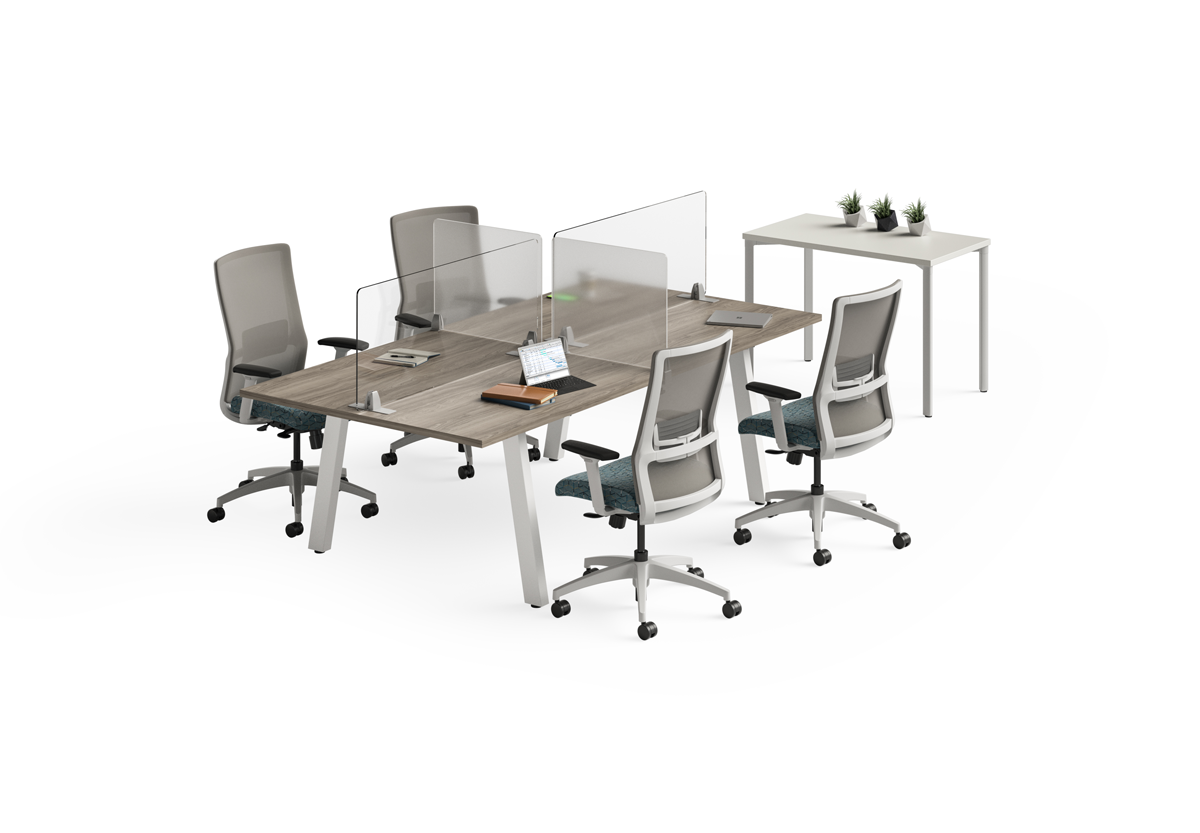 Tap into the core of productivity and create impactful, safer workstations when you add Sector protective screens to Prise benching, Tensor tables and the durable, reliable Novo collection of task chairs.