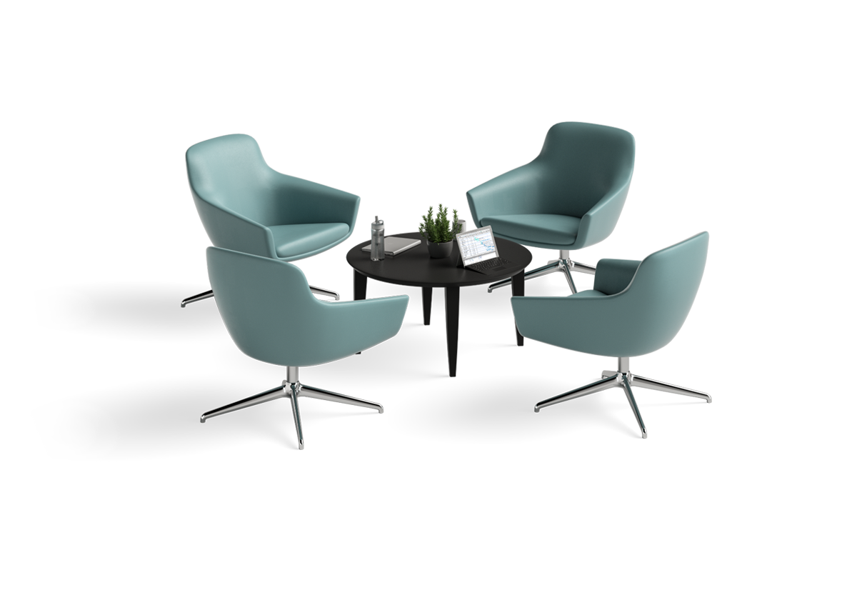 Comfort, convenience and collaboration. That’s what you can offer when you combine Gobi club chairs with our Mezzanine occasional round table.